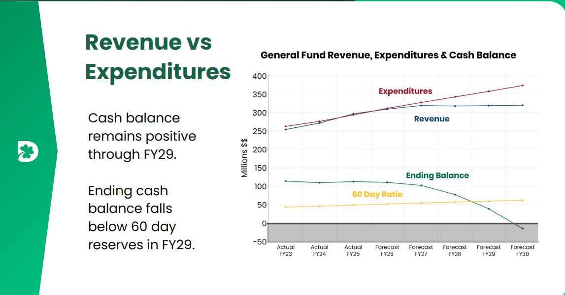 The 5 year financial outcome of the district was presented at the February 23rd board meeting revealing that the district will be in a deficit by FY29. A new levy in the spring of 2027 or an earned income tax were discussed.